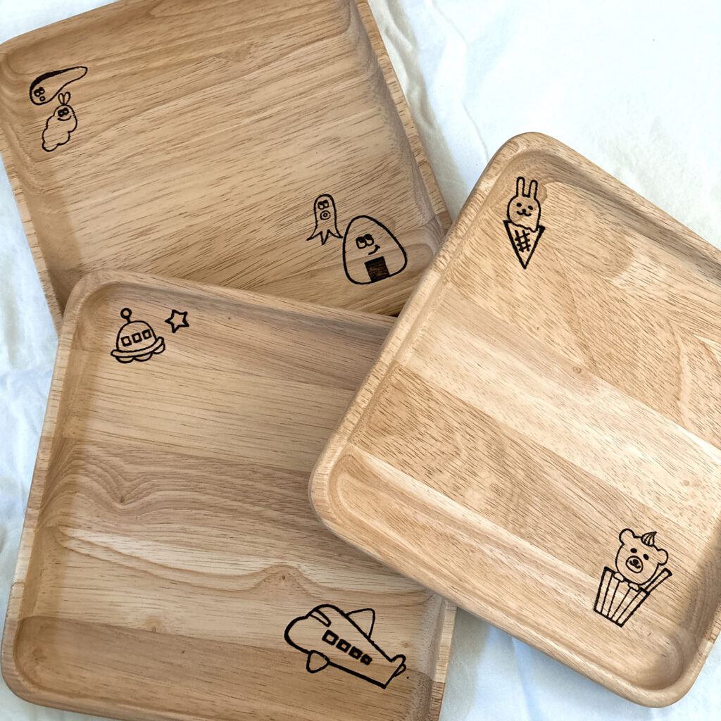 木製食器やスプーン、雑貨などに手描きで焼入れをしています✍️