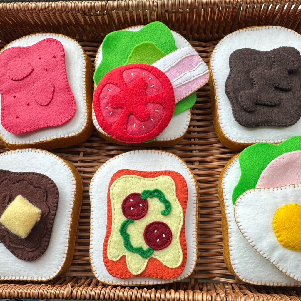 子供に人気のお弁当や指先の練習にも使えるボタンかけ、遊べる絵合わせなどフェルト小物を作るめぐみ。