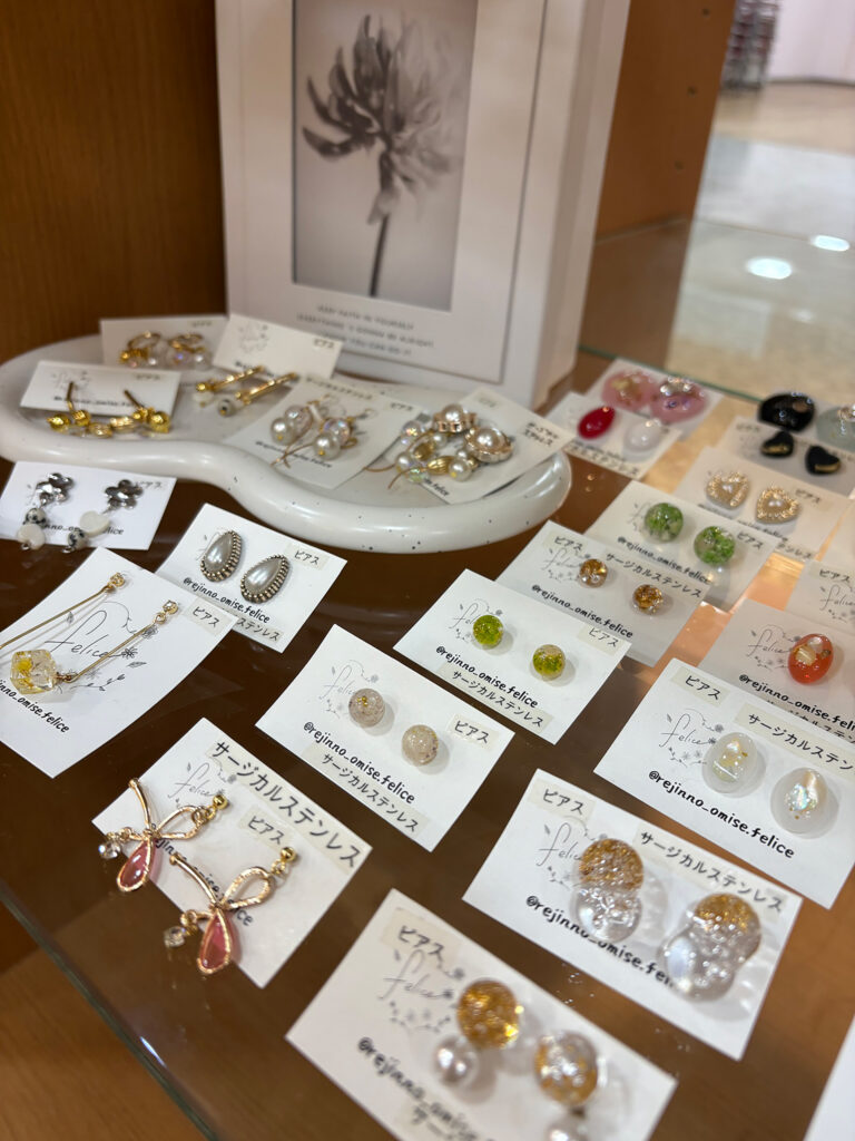 アクセサリー LUV.MIY 出店ブース番号 01 出展者紹介文 レジン作品をメインにアクセサリーを作ってます🌼いくつになっても、ママになっても、忙しい日々に身に付けるだけで気分の上がる🫶作品を見に来てください!♡ 地域 当別町 WEBサイト/SNS Instagram Post Share Pin it Baby moon 前の記事 古布々 次の記事